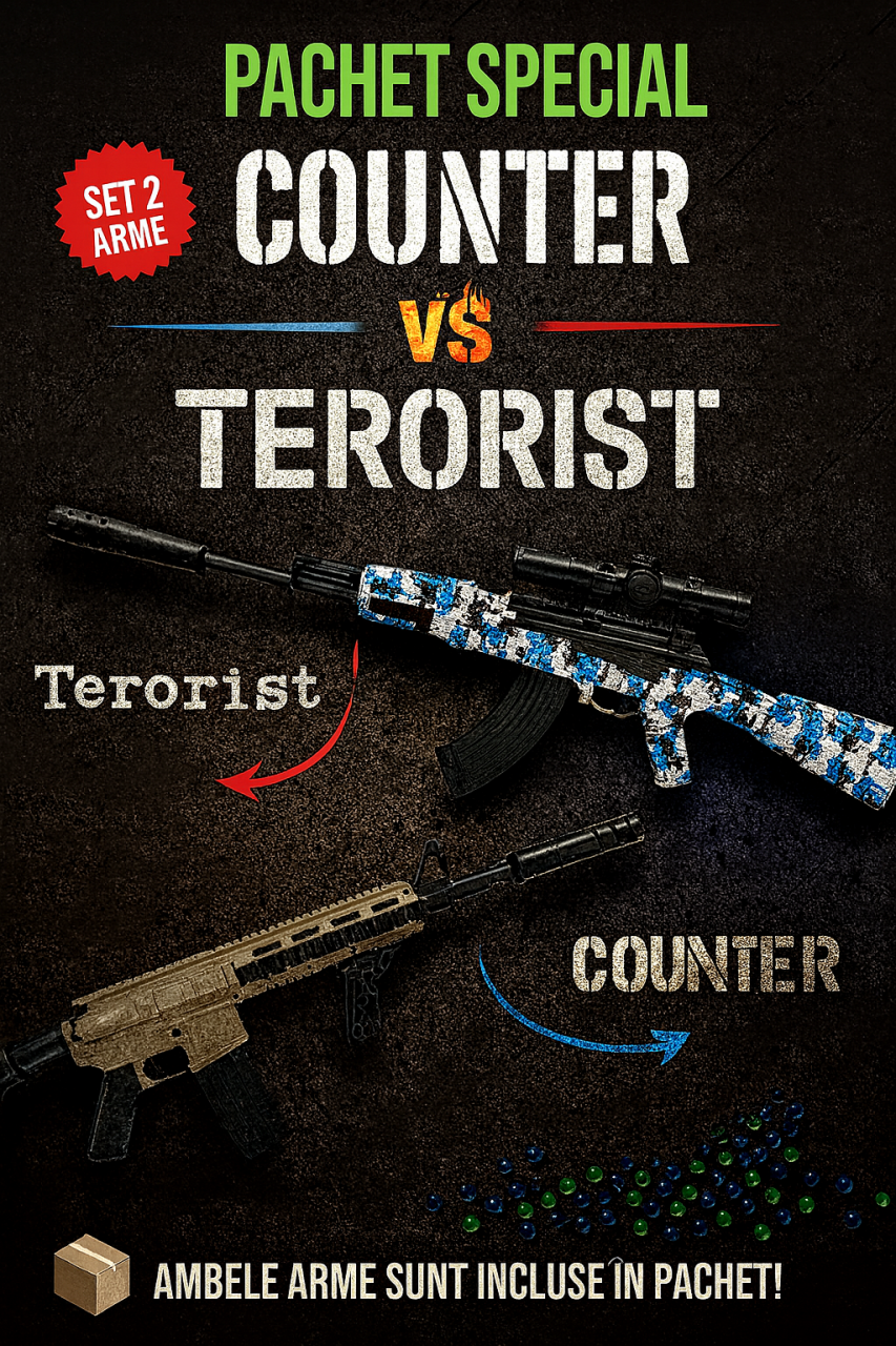 Intră direct în atmosfera jocurilor video preferate cu setul Counter vs Terorist, conceput pentru meciuri intense între prieteni.